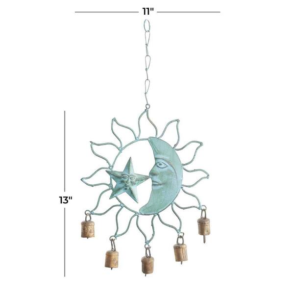 13 in. Teal Metal Sun and Moon Windchime with Bells