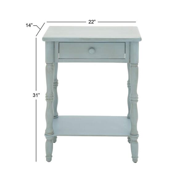 14 in. Blue 1 Drawer and 1 Shelf Extra Large Rectangle Wood End Accent Table
