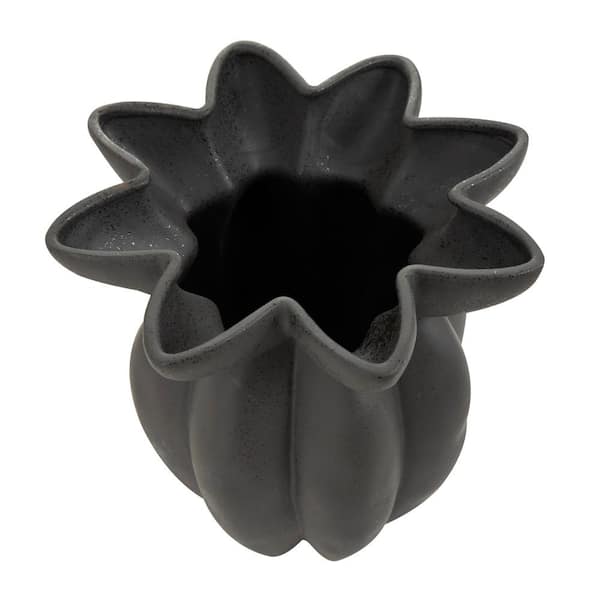 15 in. Black Speckle Textured Ceramic Decorative Vase with Tulip Style Opening