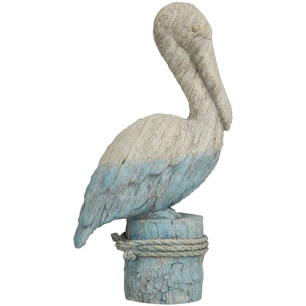 15 in. Blue Polystone Textured Ombre Bird Sculpture with Rope Details