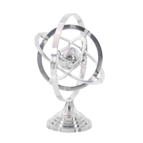 15 in. Silver Aluminum Compass Armillary Decorative Globe