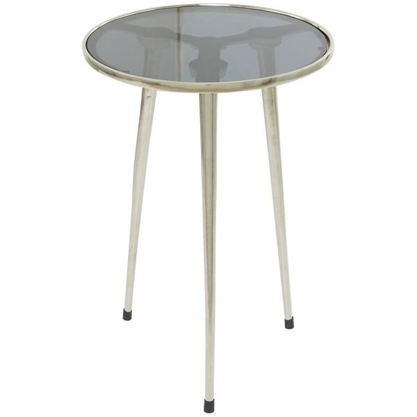 15 in. Silver Tripod Legs Large Round Glass End Accent Table with Shaded Glass Top