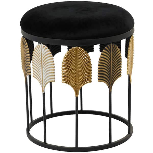 16 in. Black Embossed Leaf Medium Cylinder Wood End Accent Table with Hollow Center