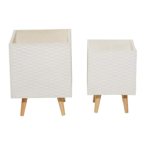 16 in. x 11 in. White Fiber Clay Contemporary Planter (Set of 2)