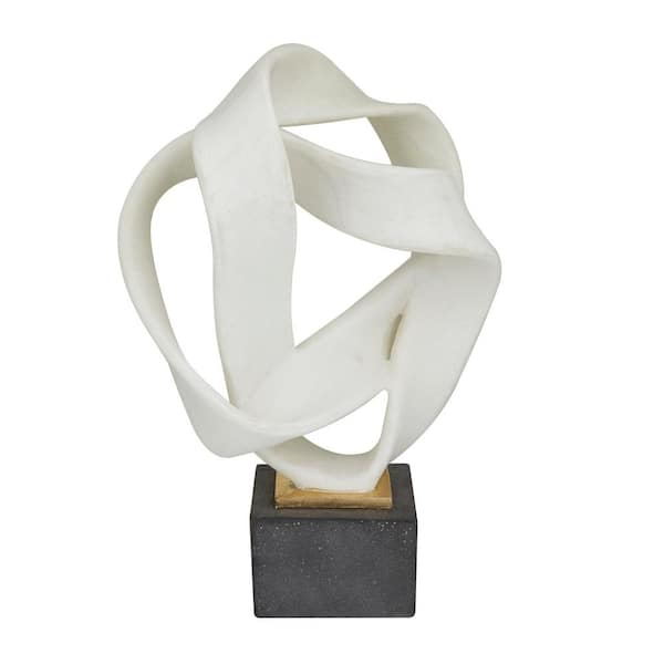 17 in. White Polystone Ribbon Line Abstract Sculpture with Black Base