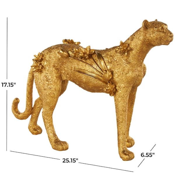 17 in .x 25 in. Gold Resin Standing Leopard Sculpture with Textured Spots and Floral Accents