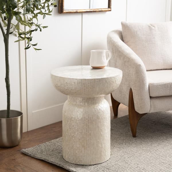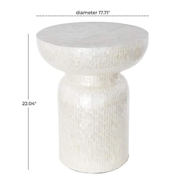 18 in. Cream Handmade Pedestal Mosaic Inlay Large Round Shell End Table