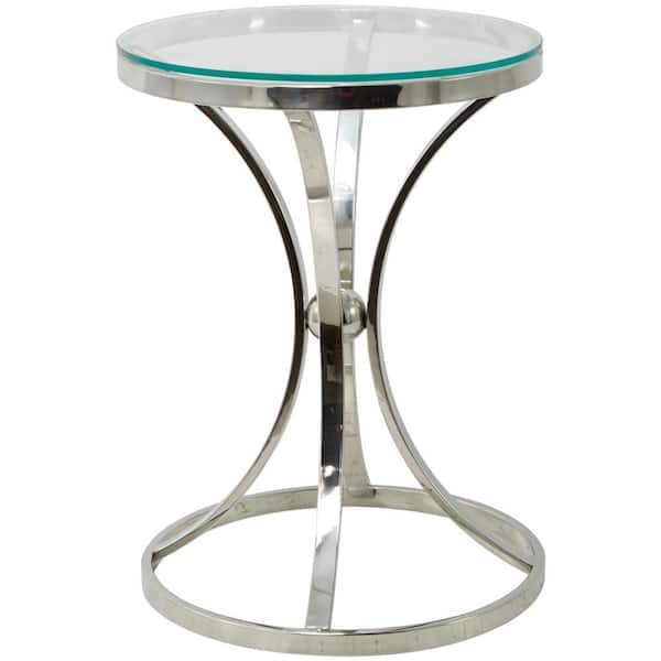 18 in. Silver Hourglass Shaped Stand Large Round Glass End Accent Table with Clear Glass Top