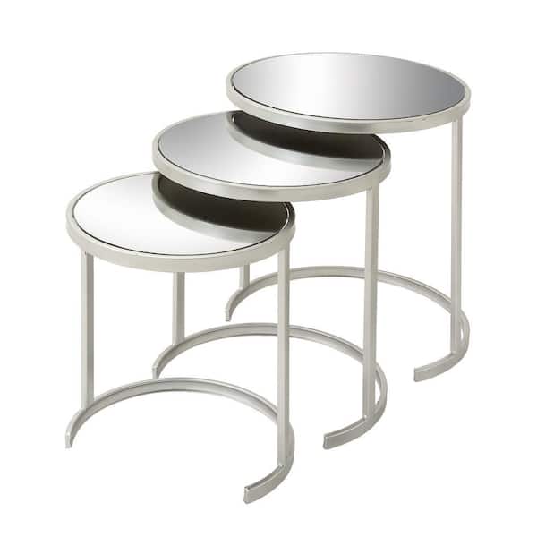 18 in. Silver Nesting Large Round Mirrored End Accent Table with Mirrored Glass Top (3- Pieces)