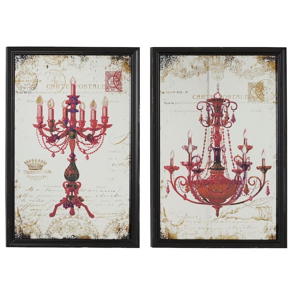18 in. x 28 in. Large Metallic Red Candelabra and Chandelier Wall Art on Iron Panels (Set of 2)