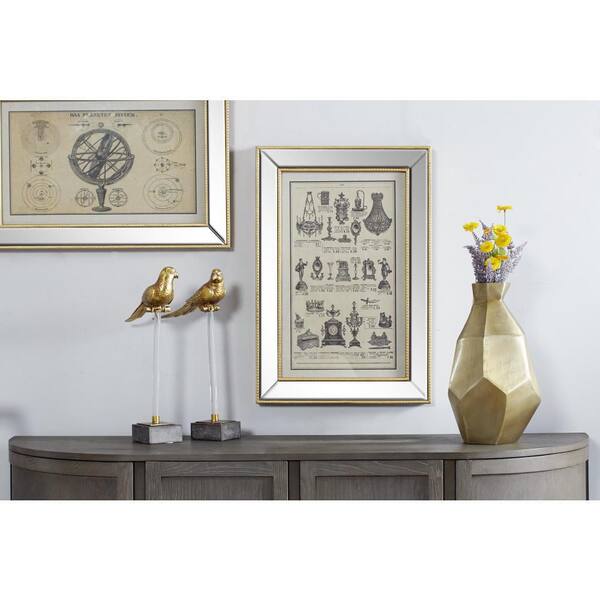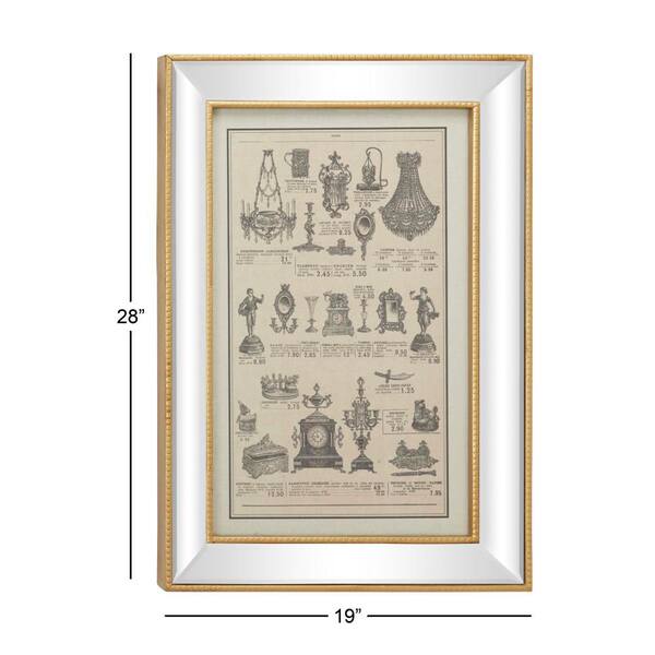 19.5 in. x 28.5 in. Large Vintage Style French Illustrations Textile in Rectangular Mirror and Gold Frame