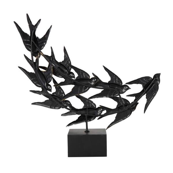 19 in. Black Metal Metallic Flying Bird Sculpture with Black Block Base
