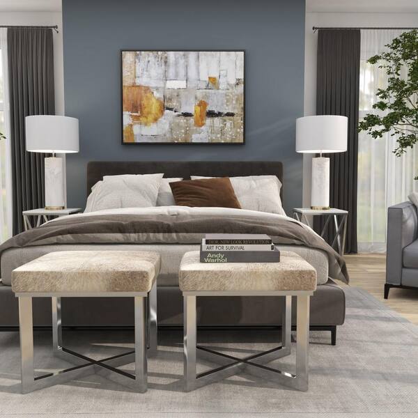 19 in. Silver Stainless Steel Hair on Hide Stool