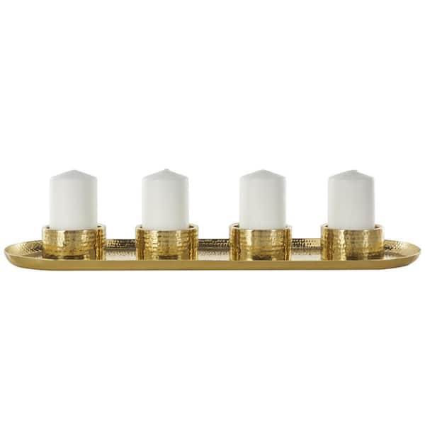 2 in. Gold Metal Stainless Steel 4-Candle Candelabra with Attached Tray