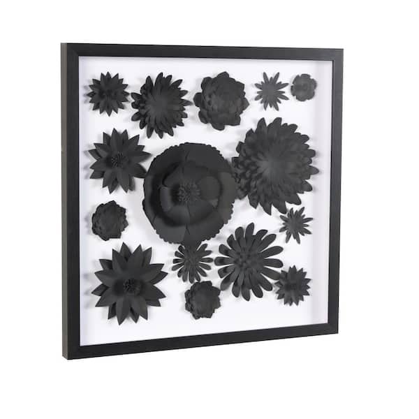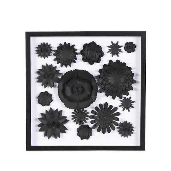 20 in. 20 in. Black Cluster Floral Shadow Box Wall Art with Varying Shapes and Sizes