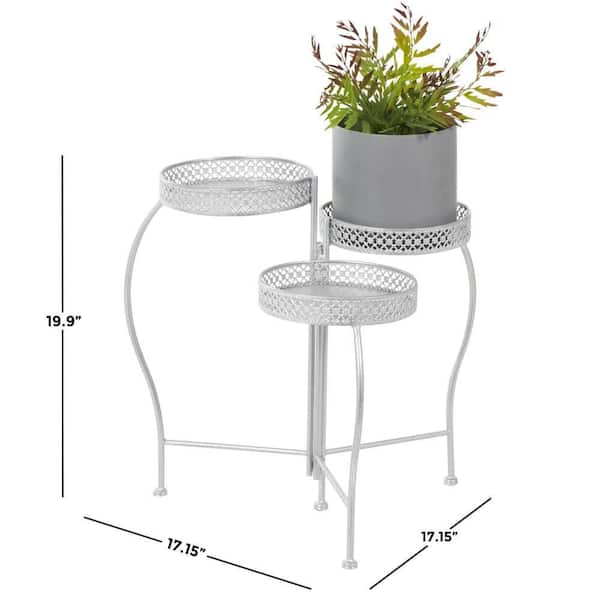 20 in. Silver Metal Curved Folding 3-Tier Plantstand with Floral and Scroll Patterns