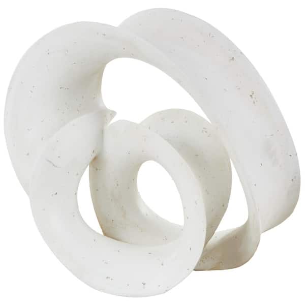 20 in. x 17 in. White Polystone Wavy Shaped Abstract Sculpture with Cutouts and Speckled Texturing