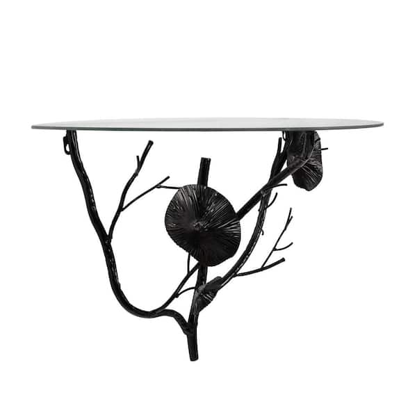 23.75 in. W x 11.88 in. D Black Branch Metal Floral Decorative Wall Shelf with Glass Top