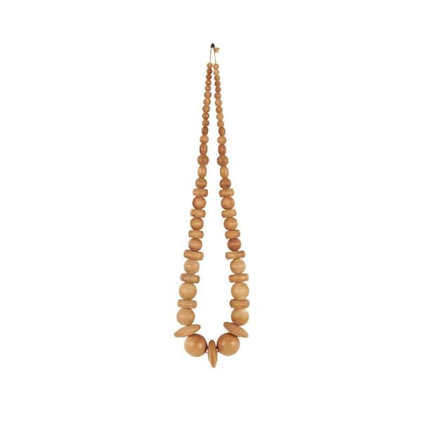25 in. Light Brown Handmade Wood Geometric Beaded Garland Necklace Garland with Tassel