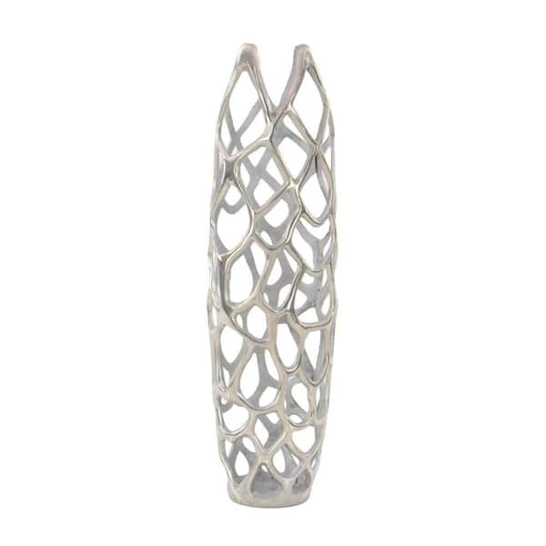 26 in. Silver Coral Aluminum Metal Decorative Vase