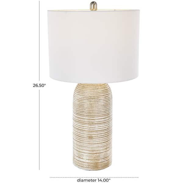 27 in. Brown Wood Task and Reading Table Lamp with White Drum Shade