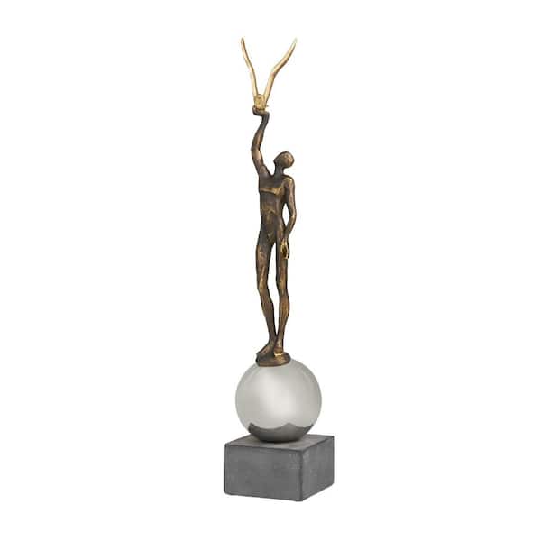 28 in. Silver Polystone People Sculpture with Stainless Steel Accents