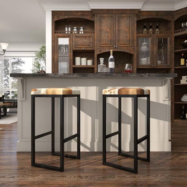 29 in. Walnut Brown Square Bar Stool with White Accents
