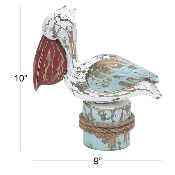 3 in. x 10 in. Multi Colored Wood Pelican Sculpture