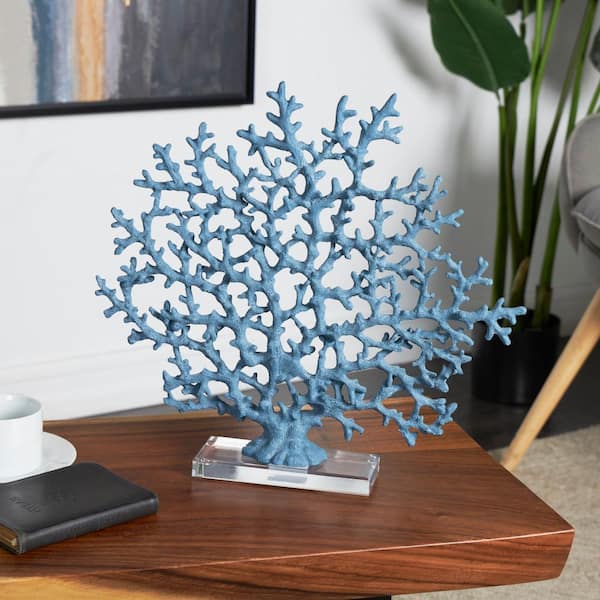 3 in. x 16 in. Blue Resin Coral Sculpture with Clear Resin Base