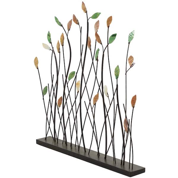 3 in. x 27 in. Black Metal Leaf Sculpture with Black Base