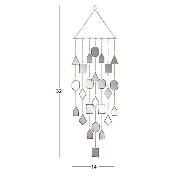 32 in. Brown Metal Geometric Windchime with Glass Mirrors and Bells