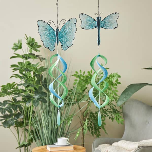 32 in. Extra Large Multi Colored Metal Dragonfly Swirl Wind Spinner Windchime with Dangling Charms (2-Pack)