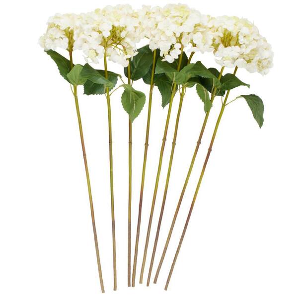 32 in. Tall White Hydrangea Artificial Flower Stem (Set of 8)