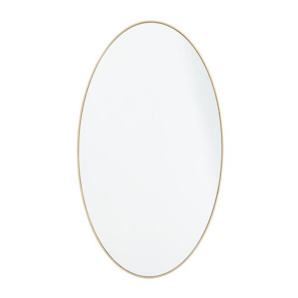 32 in. x 18 in. Oval Round Framed Gold Wall Mirror with Thin Minimalistic Frame
