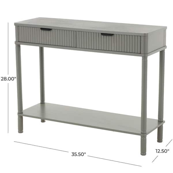 36 in. Gray Large Rectangle Wood Handmade 2 Drawer Console Table with Black Handle and Ribbed Front