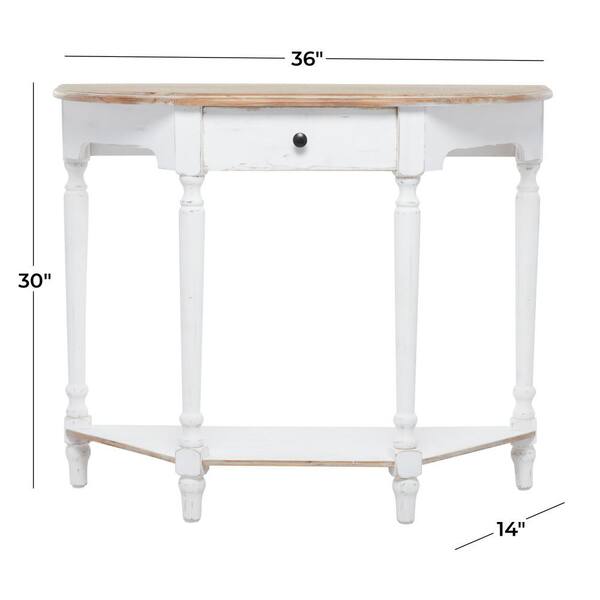 36 in. White Extra Large Rectangle Wood 1 Drawer and 1 Shelf Console Table with Brown Wood Top