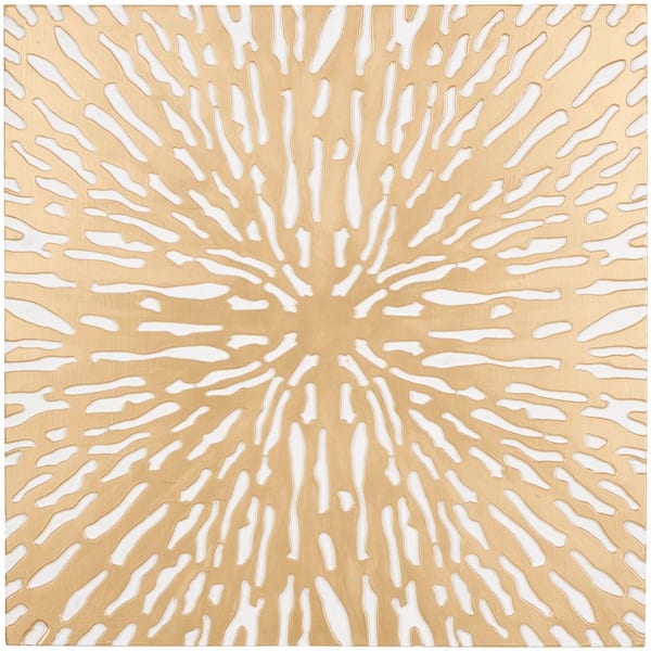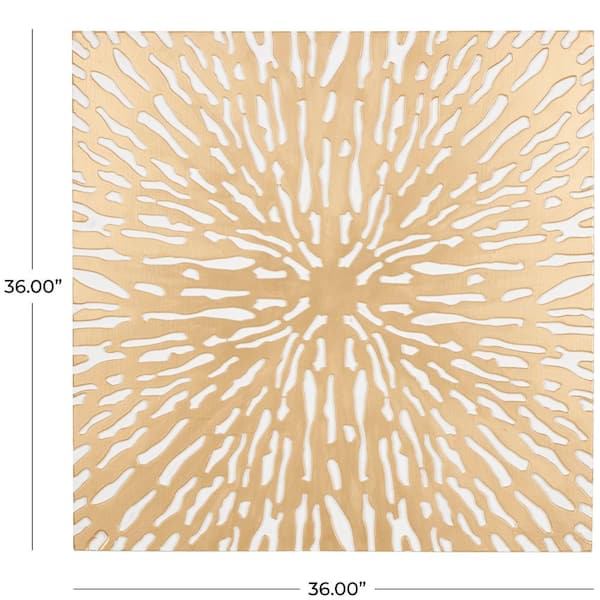 36 in. x 36 in. Wooden Gold Abstract Carved Square Starburst Wall Decor with White Backing