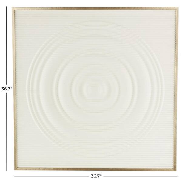 37 in. x 37 in. White Ribbed Geometric Metal Work Wall Decor with Brass Frame