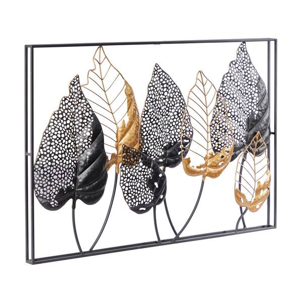 38 in. x 26 in. Metal Black Tall Cut-Out Leaf Wall Decor with Intricate Laser Cut Designs