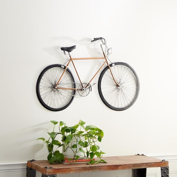 39 in. x 24 in. Metal Black Bike Wall Decor with Seat and Handles
