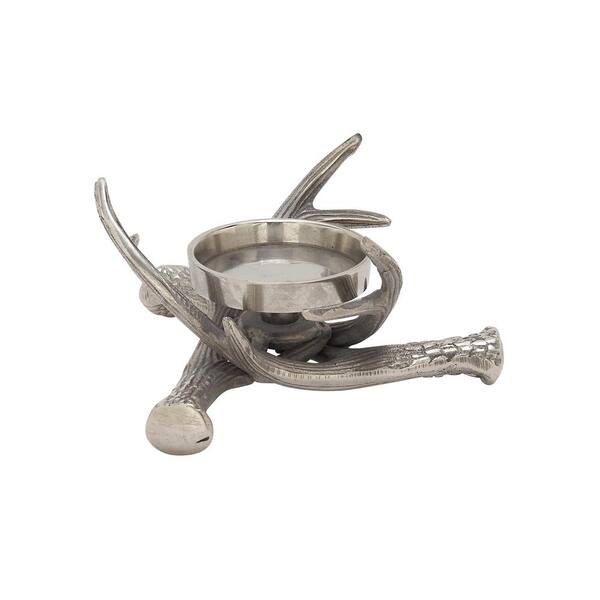 4 in. H Silver Aluminum Antler Candle Holder
