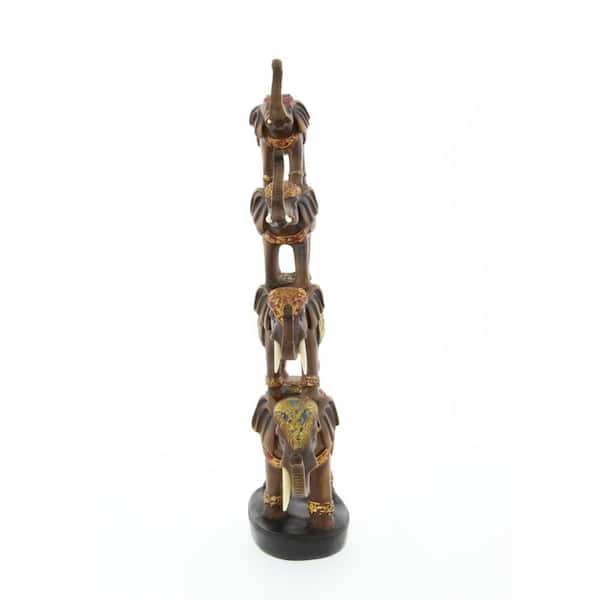 4 in. x 18 in. Brown Polystone Elephant Sculpture