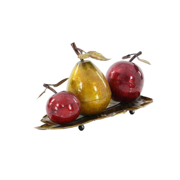 4 in. x 19 in. Red Metal Decorative Fruit Sculpture with Platter