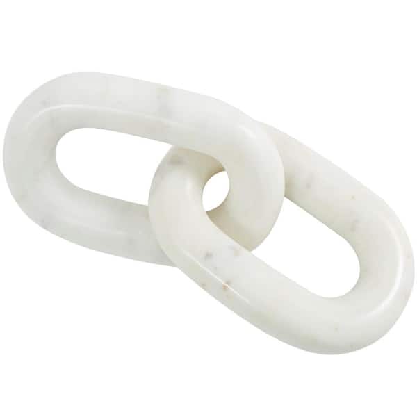 4 in. x 2 in. White Marble Geometric 2 Link Chain Sculpture