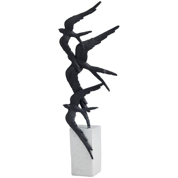 4 in. x 21 in. Black Polystone Flying Bird Sculpture with White Block Base