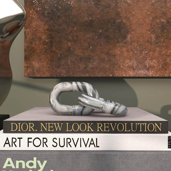 4 in. x 3 in. Gray Marble Geometric 2 Link Chain Sculpture