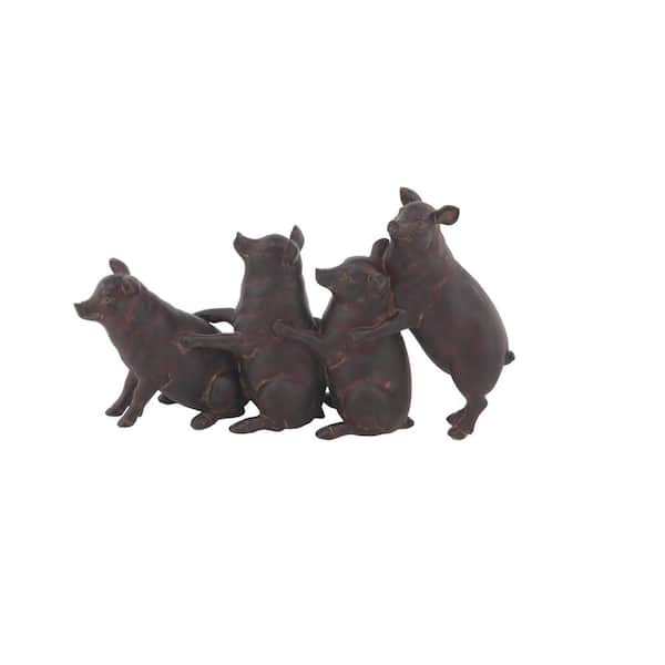 4 in. x 7 in. Dark Brown Polystone Pig Sculpture