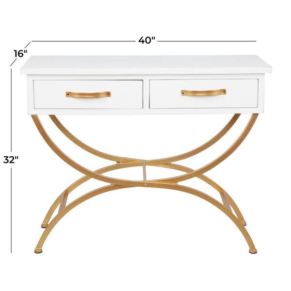40 in. White Extra Large Rectangle Wood 2 Drawers Console Table with Arched Base