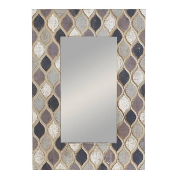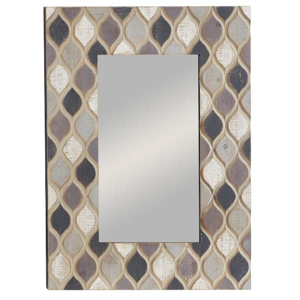40 in. x 28 in. Rectangle Framed Beige Wall Mirror with Diamond Pattern