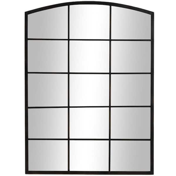 40 in. x 30 in. Arched Window Pane Inspired Square Framed Black Wall Mirror with Black Frame